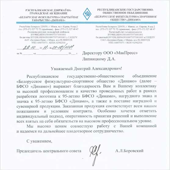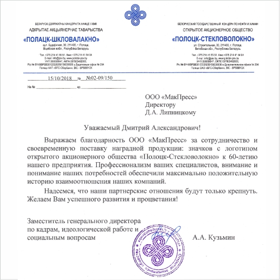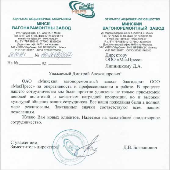 ООО «МакПресс» является одним из наиболее динамично развивающихся разработчиков и поставщиков наградной продукции в Беларуси. Наш профиль – изготовление медалей, значков, орденов, нагрудных знаков, сувенирных монет из металла на заказ. У нас за плечами сотни успешных проектов и благодарных клиентов. Мы успешно сотрудничаем со многими крупными государственными ведомствами, спортивными, коммерческими, промышленными, силовыми и образовательными структурами.